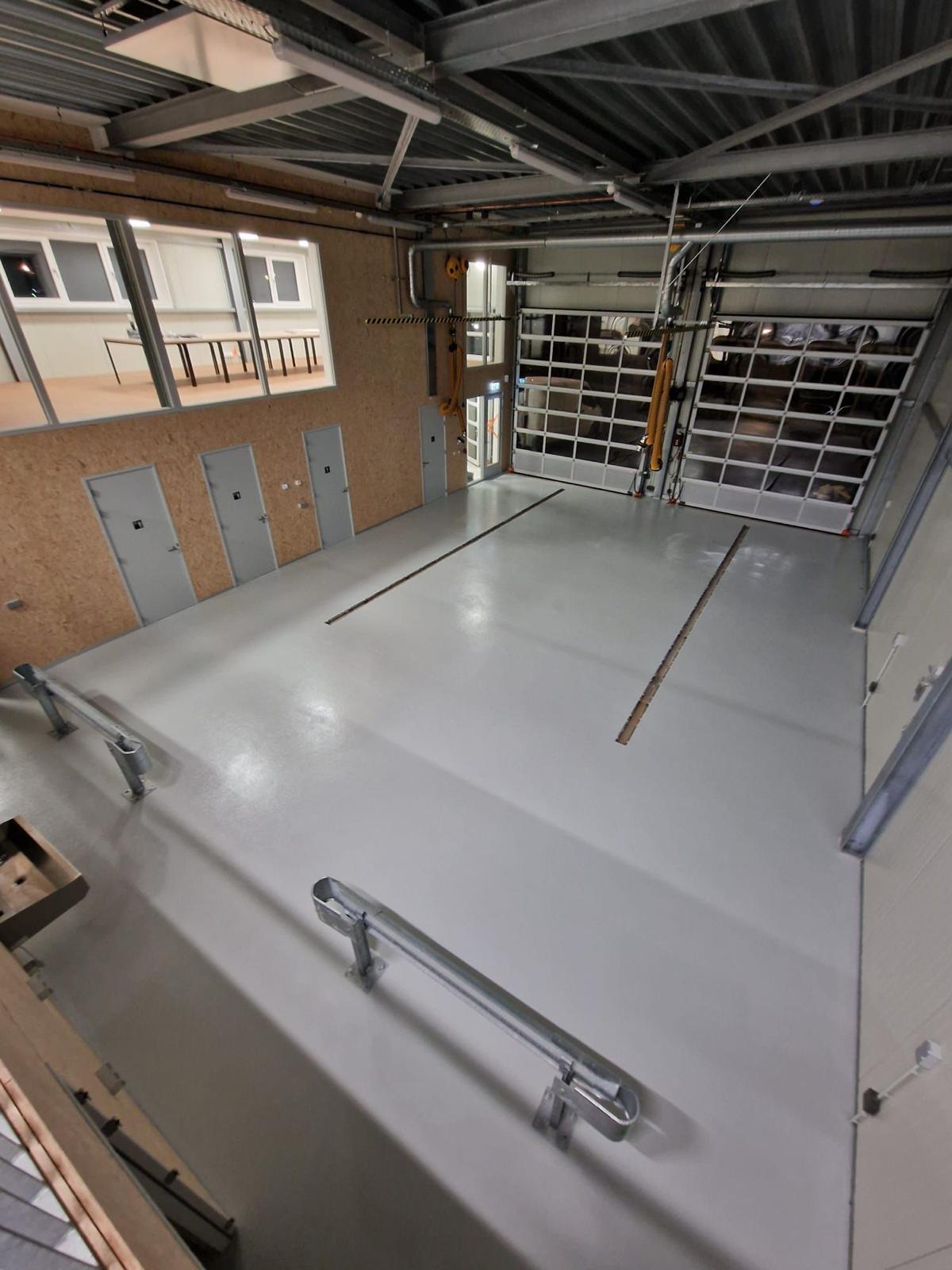 In deze gloednieuwe brandweerkazerne mochten wij schoonloopmatten, pvc banen, wandafwerking en vloeistofdichte antislipcoating aanbrengen.