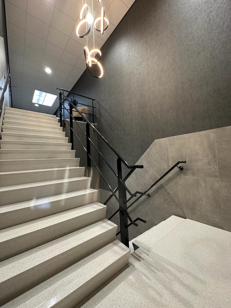 Bij vis en vleeshandel G&B mochten we deze prachtige trap stofferen met Nora trapvormen. Nora trapvormen zijn slijtvaste rubberen trapvormen.