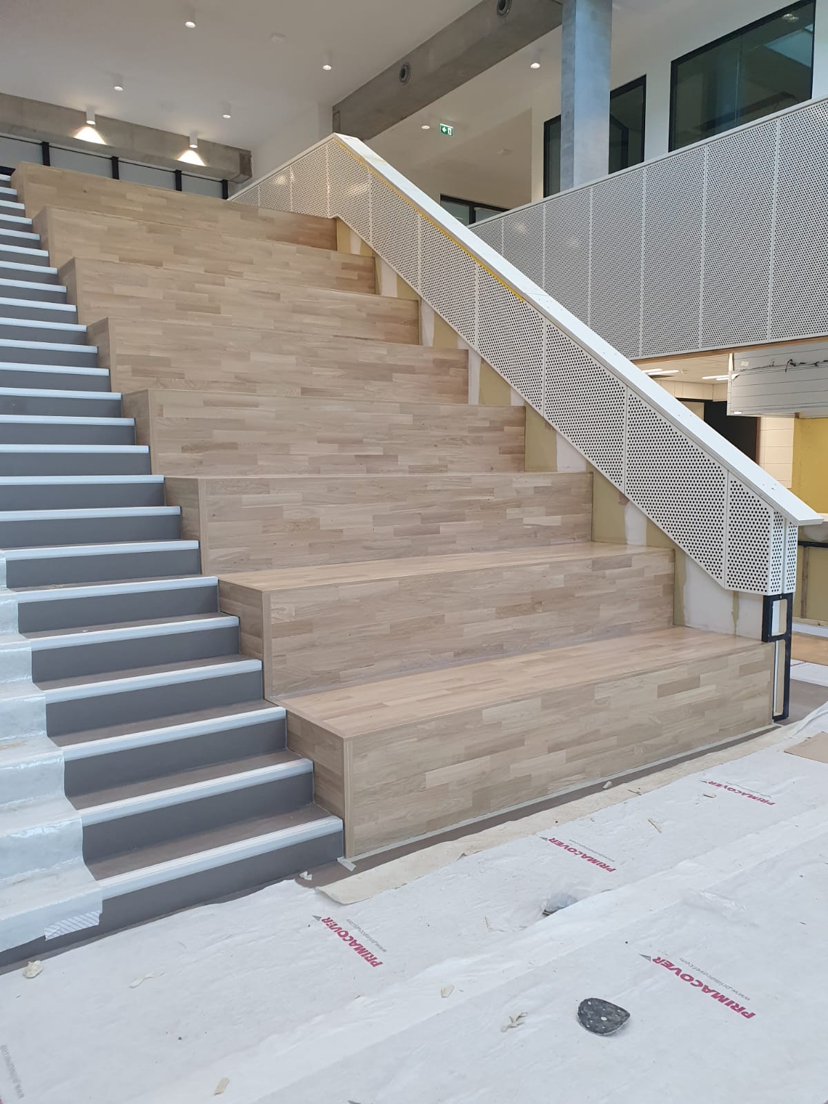 Wij mochten parket, marmoleum, schoonloopmatten, plinten en gietvloeren aanbrengen in prachtige, mooie kleuren.