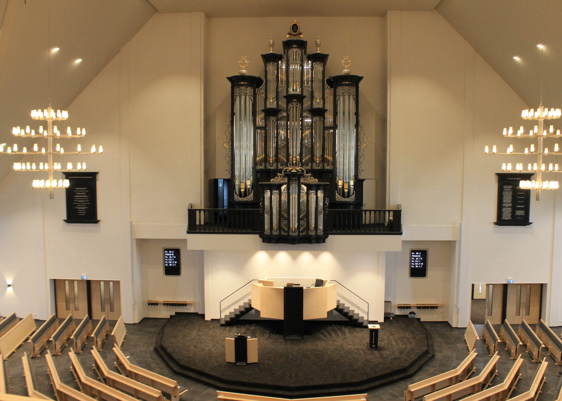 Voor dit prachtige, gloednieuwe kerkgebouw van de Gereformeerde Gemeente te Yerseke mochten wij de complete stoffering verzorgen.