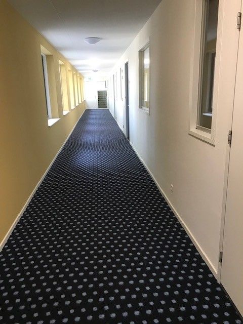 Projectservice Zuidwest heeft 250 m2 flotex in de gangzones, 120 m2 PVC houtstroken, 6 rolgordijnen en 50 m1 gordijnen en schoonloopmatten aangebracht.