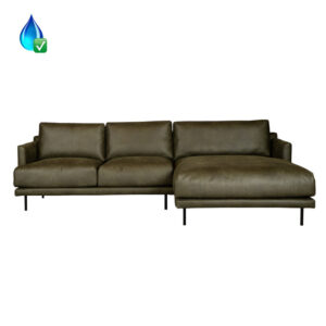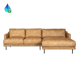 De hoekbank Denver is bekleed met een water- en vuilafstotende stof eco-leer. Eco-leer is een combinatie van leer en polyester. De bank heeft een Martindale score van 30.000, dit geeft aan dat het zeer slijtvast is. De bank is gemakkelijk te onderhouden door middel van een vochtige doek.