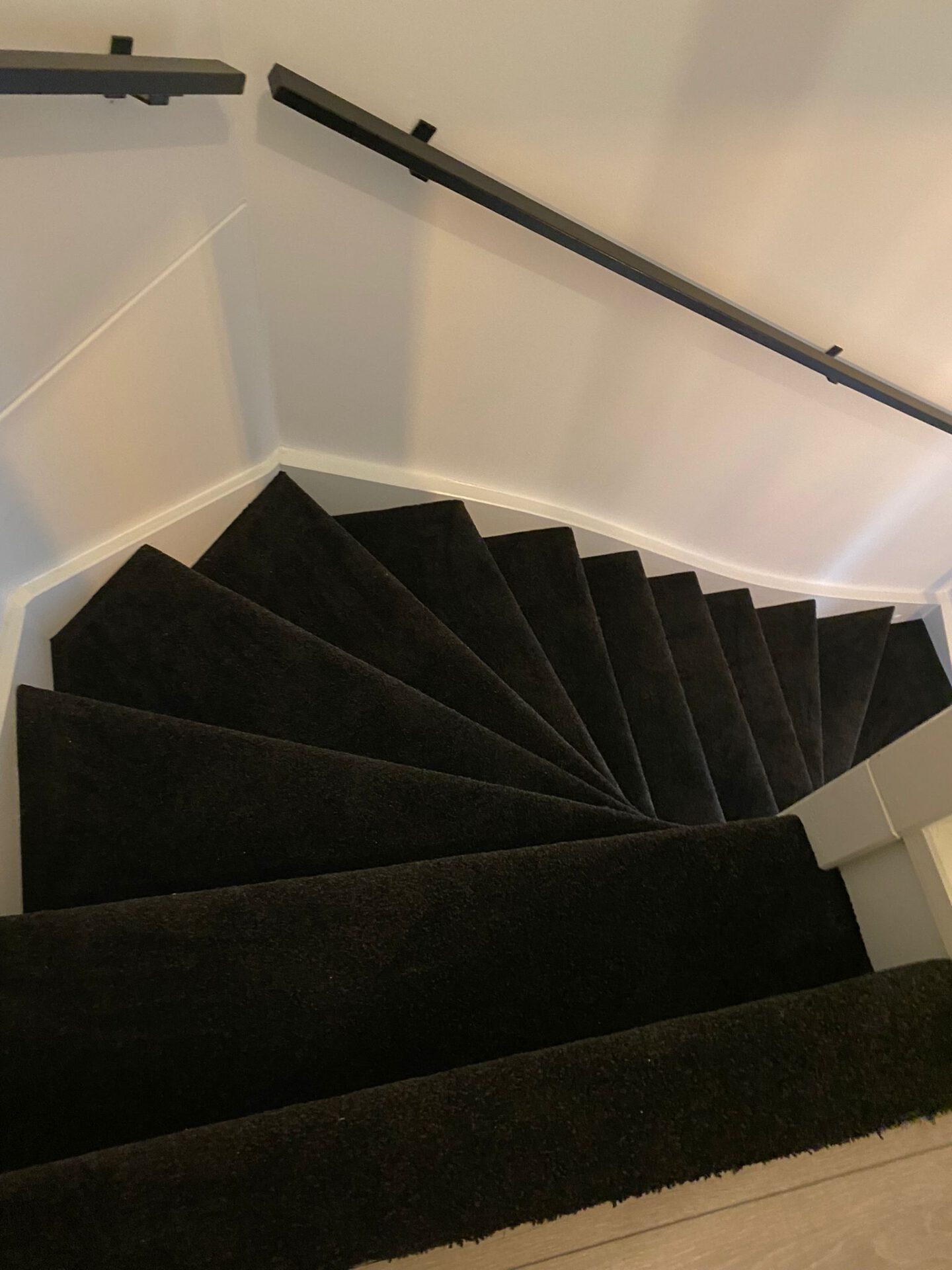 Bij deze particuliere woning in Kruiningen mochten wij de stoffering van de trap verzorgen.