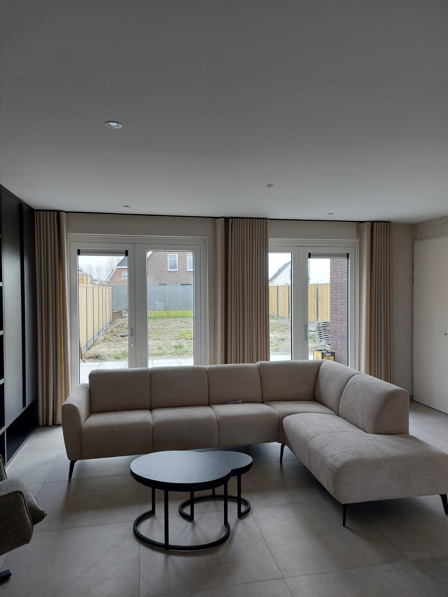 In deze prachtige nieuwbouwwoning mochten wij gordijnen en houten jaloezieën aanbrengen.