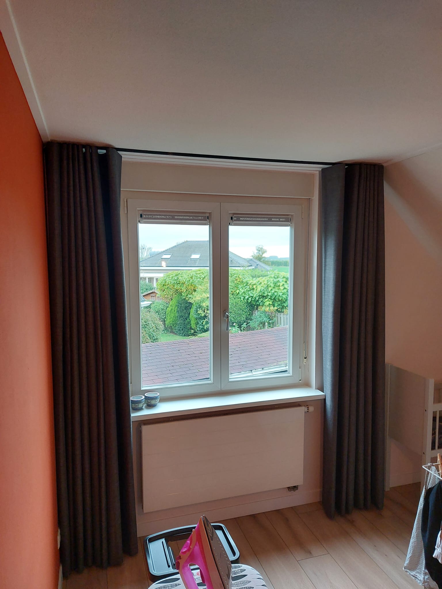 In deze woning in Yerseke hebben we gordijnrailsen en gordijnen van het merk Toppoint aangebracht.